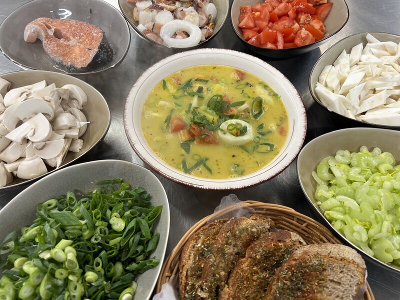 Frischer Seelachs mit neuen Kartoffeln und Spargelsalat